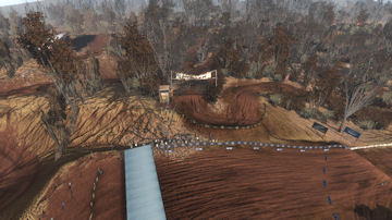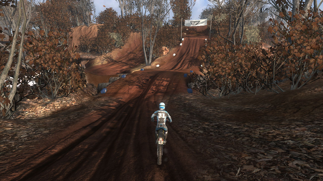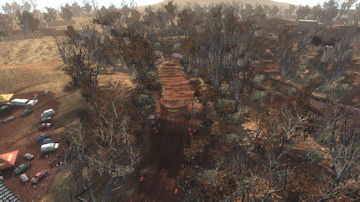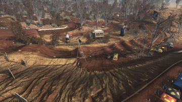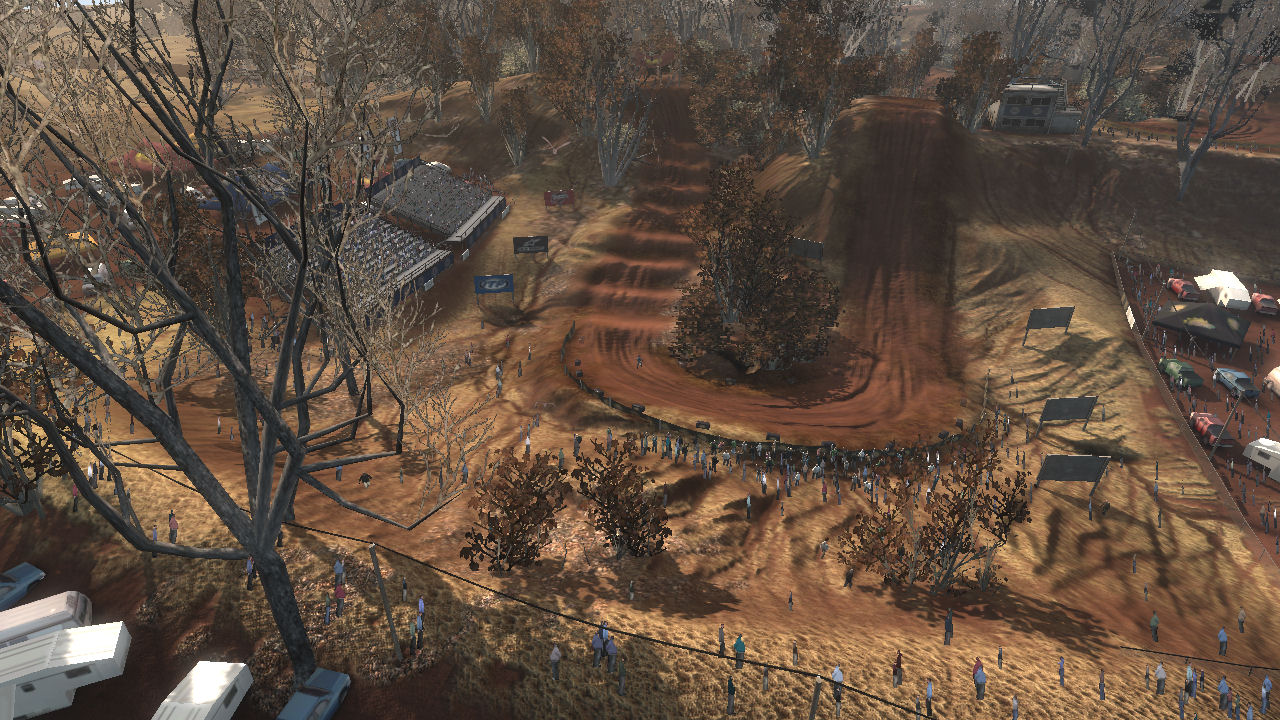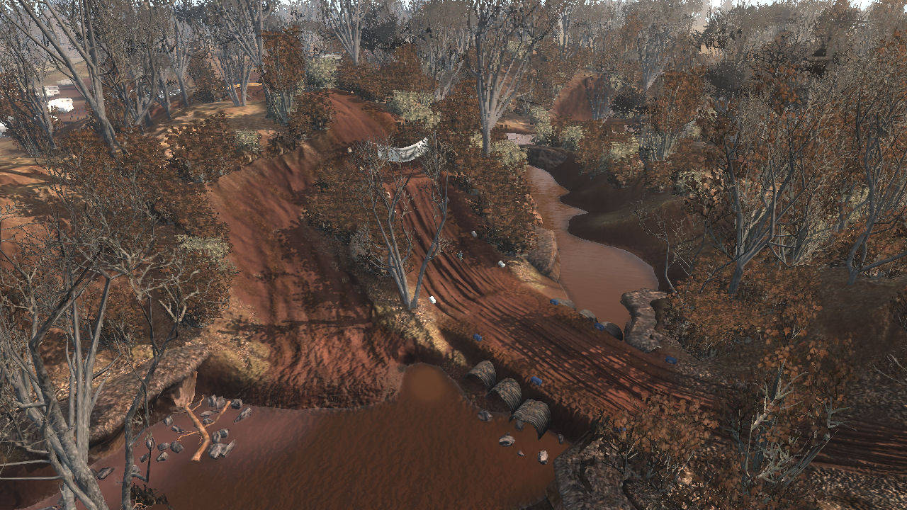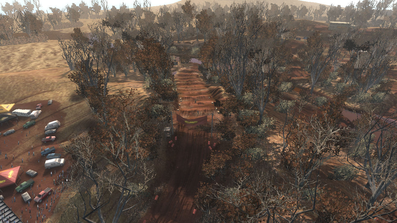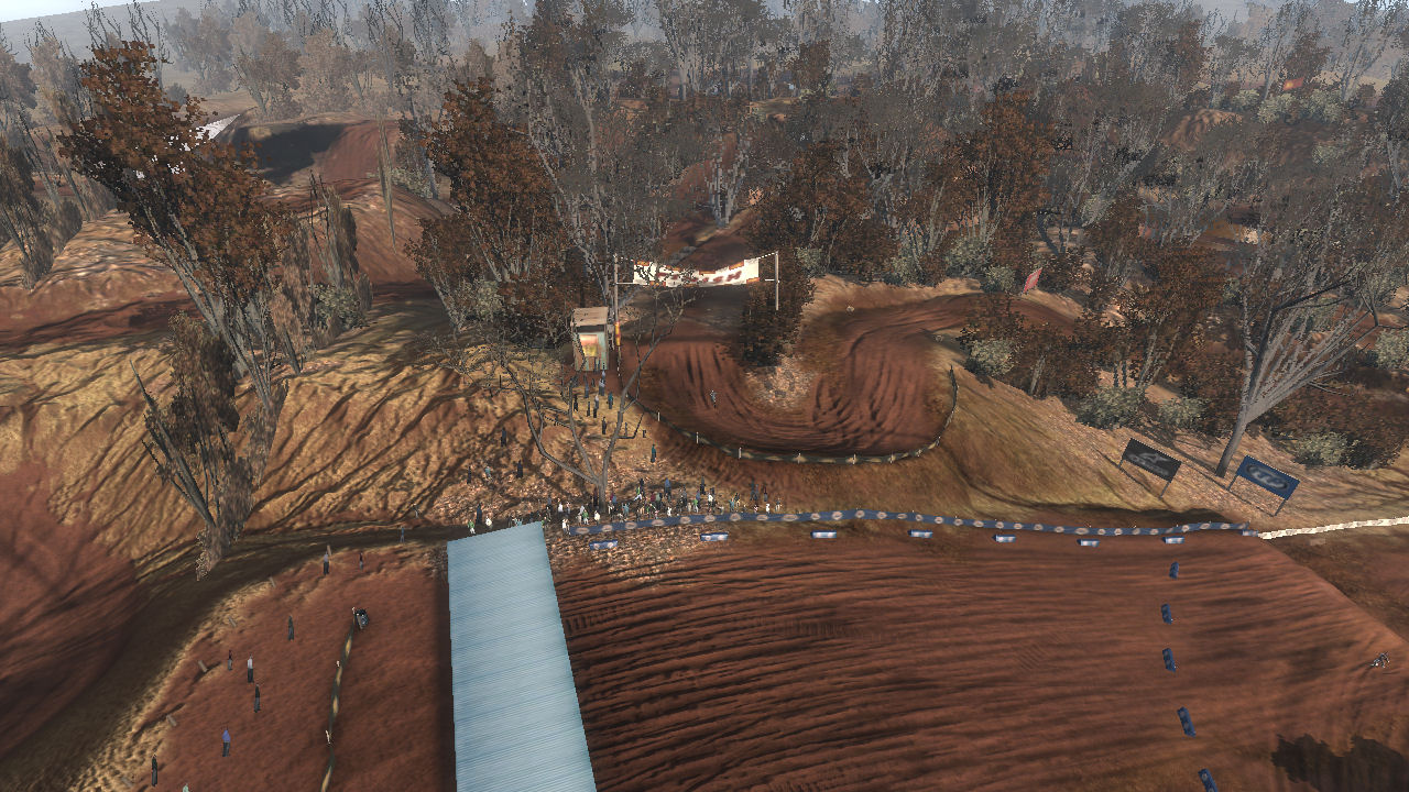 The track was meant to be in a dried up riverbed area where years ago it was a full flowing river system. This caused a 2 layer of elevation approach, in the valley (old water level) and on top where the flat plains were. The sharp elevation changes are short but steep and made great for jumping.