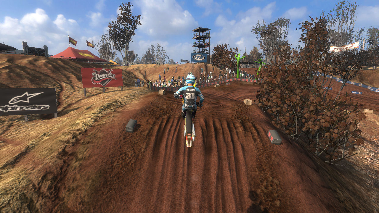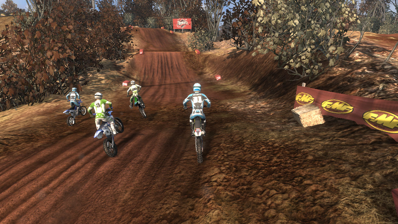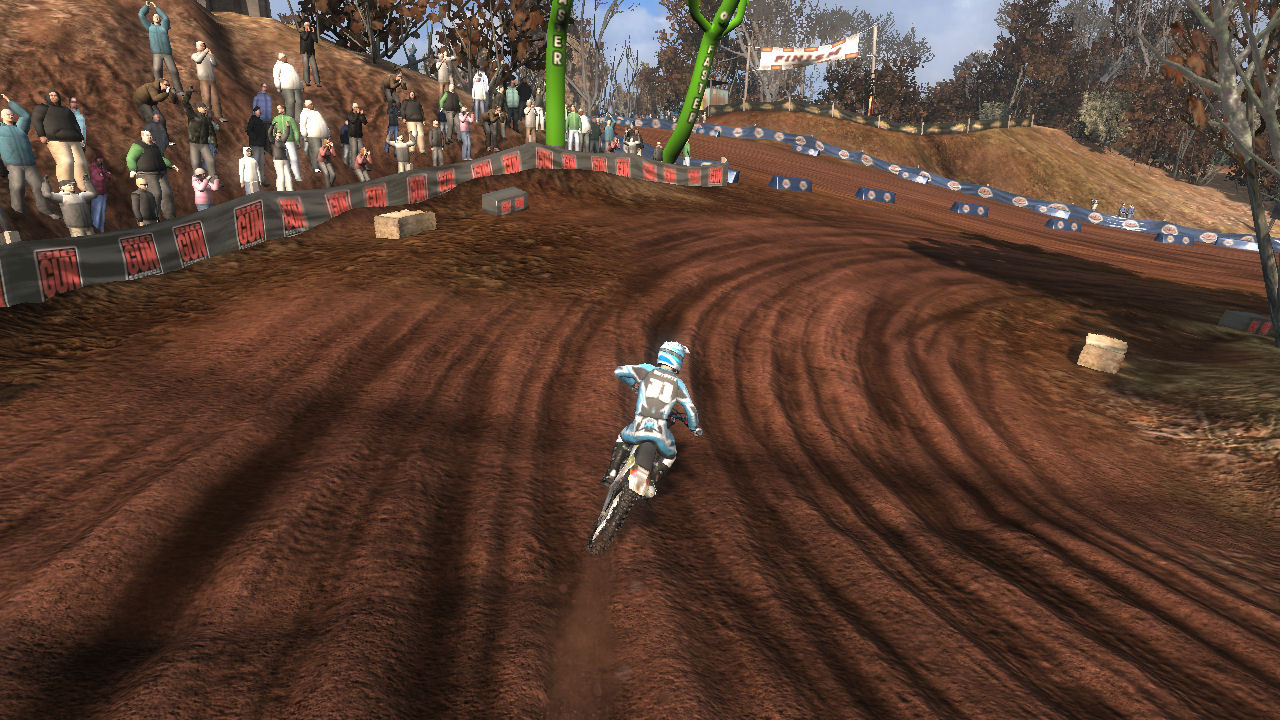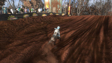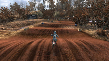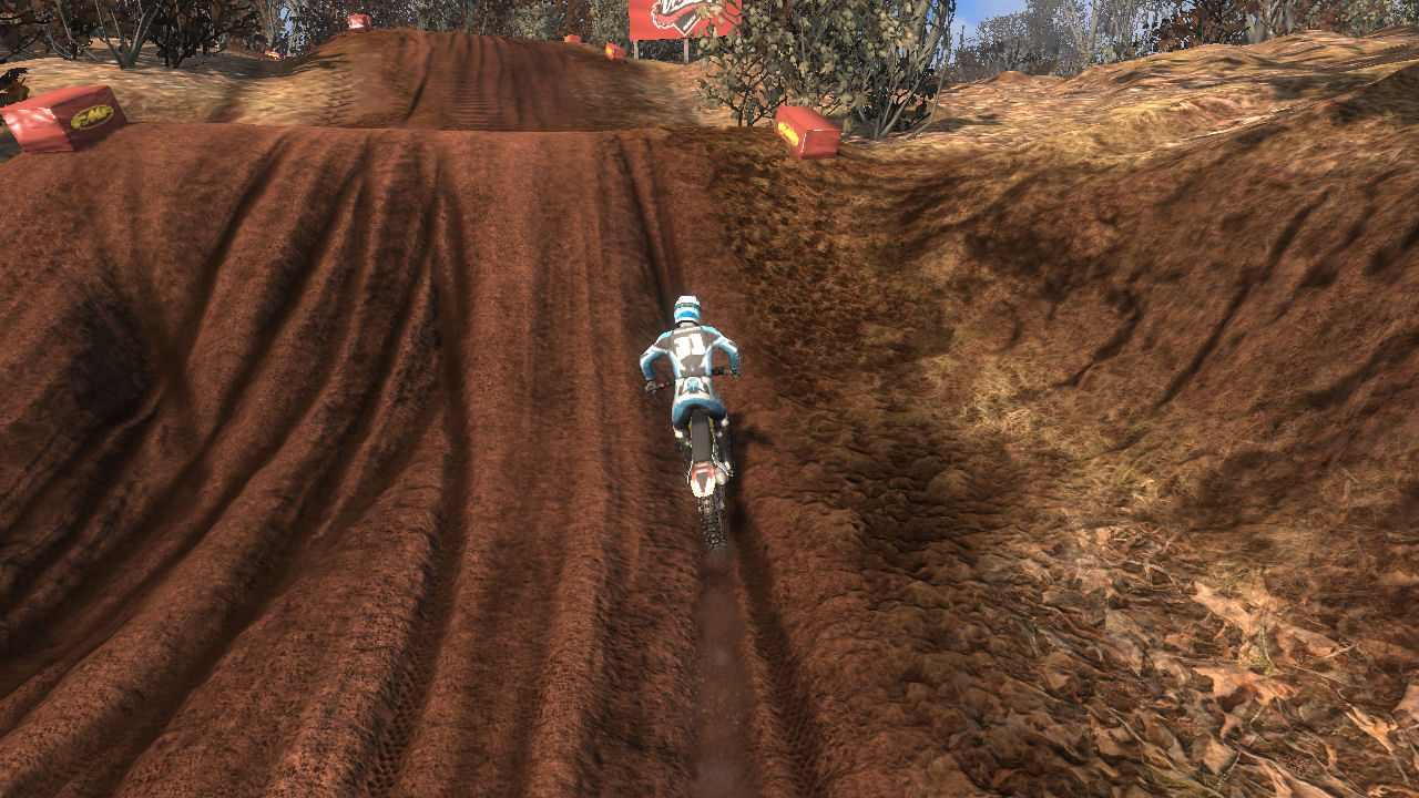 Turn 1 - On the start you want to take turn 1 as tight as possible to prevent other riders getting inside of you and pushing you out, just make sure you don't cut it too sharp if another rider is already inside. Every lap afterwards, I prefer to take this corner wide to get a run at the uphill jumps ahead to keep speed.
