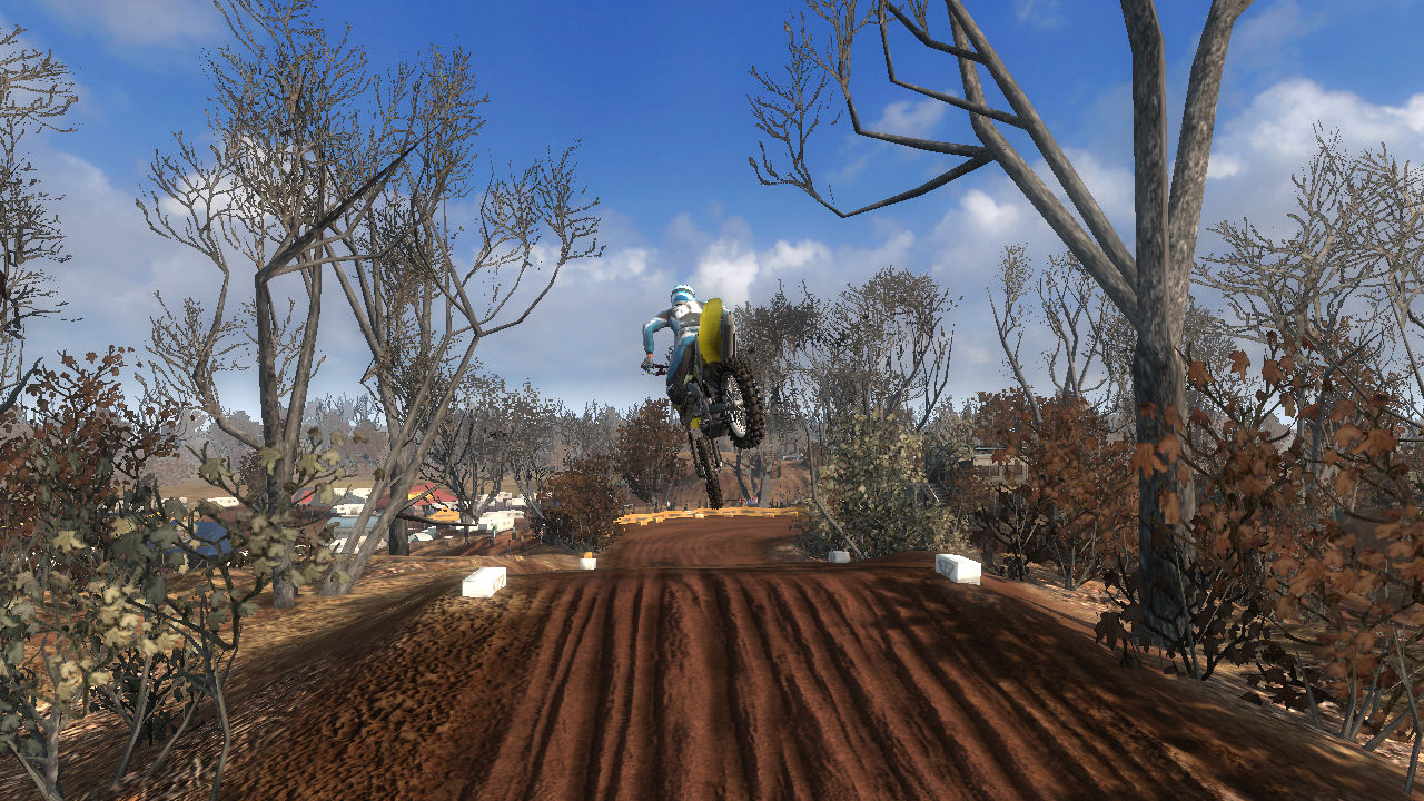 Once you jump over the finish line jump you land on the downhill towards turn 4. There are going to be several uphill and downhill journeys around this track.