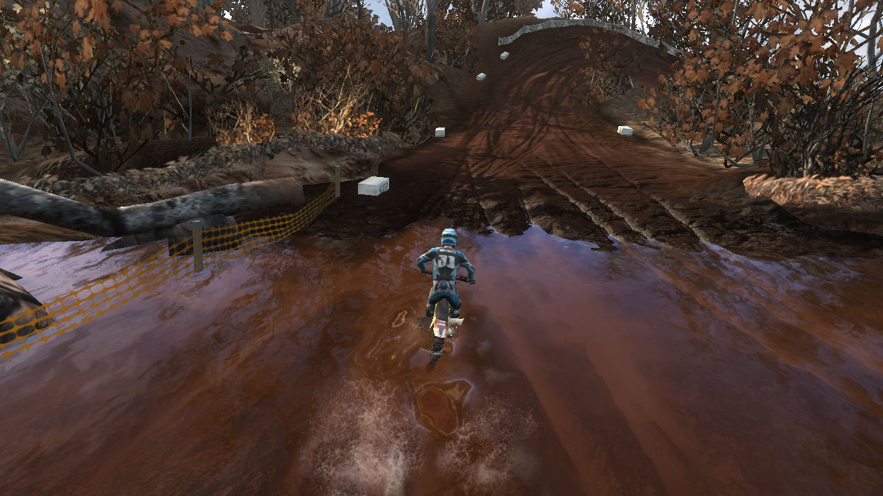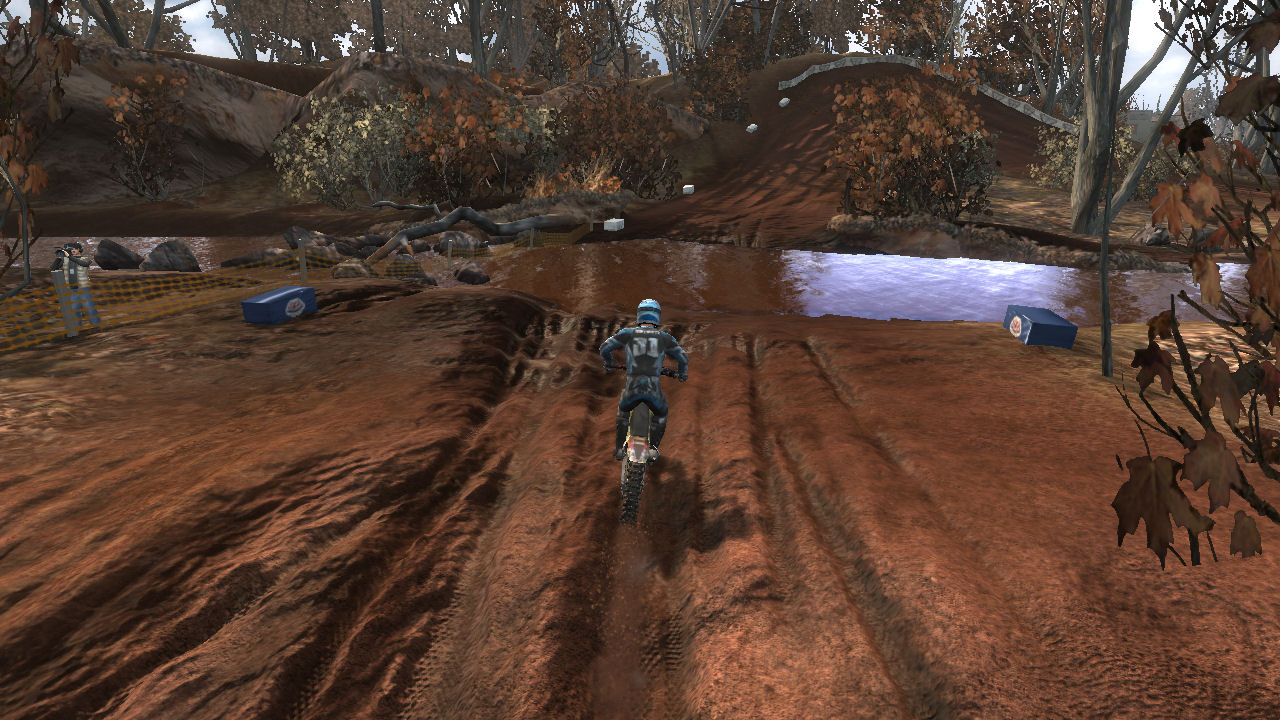 I really like this track. I love the dirt, I love the mud, and I love the fact that it winds up and down hills and through water. This is a good introduction to tight turns, momentum killing uphill whoops, and bumpy decents into water. All require you to pay attention to the path you are taking and timing your moves so that you don't lose your momentum or lose control. Right after riding on this for the first time, I contacted RBW_Checkerz448 to see if this was his track. The 448 seemed like a big clue. This is what he told me: