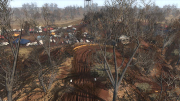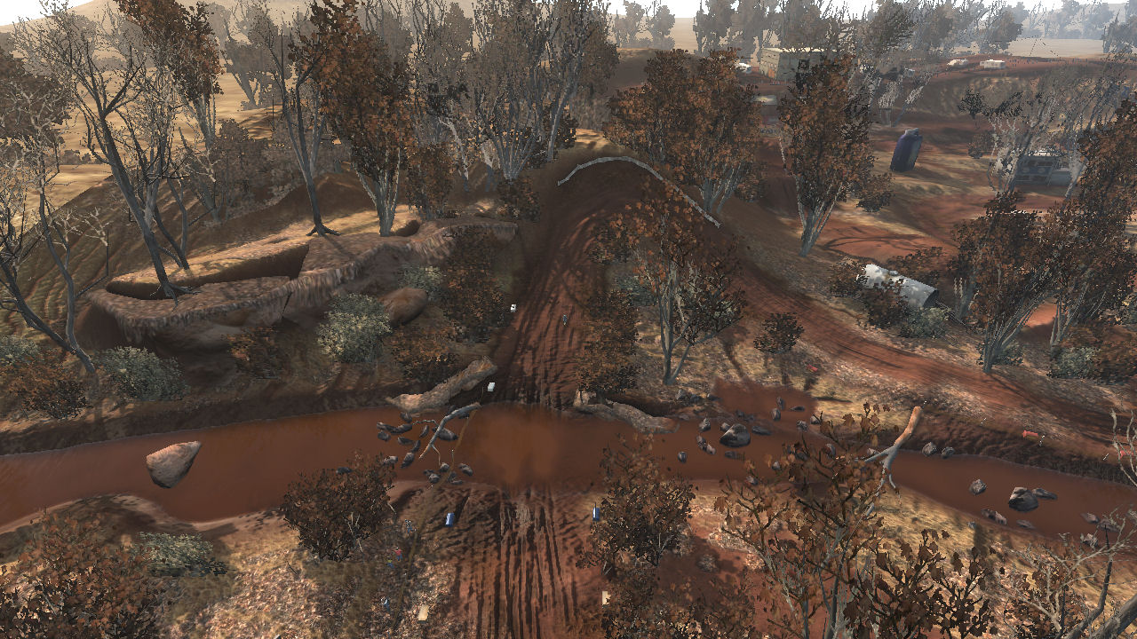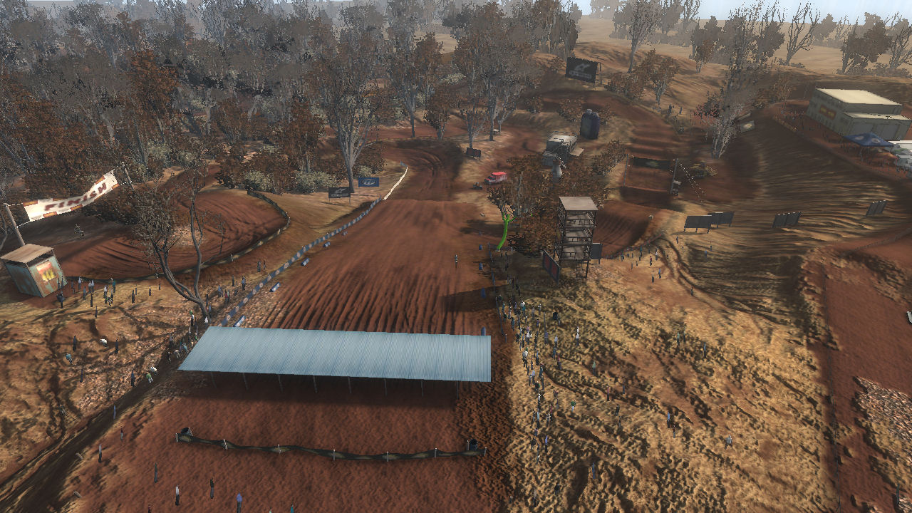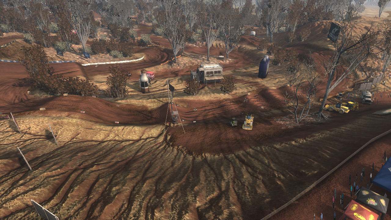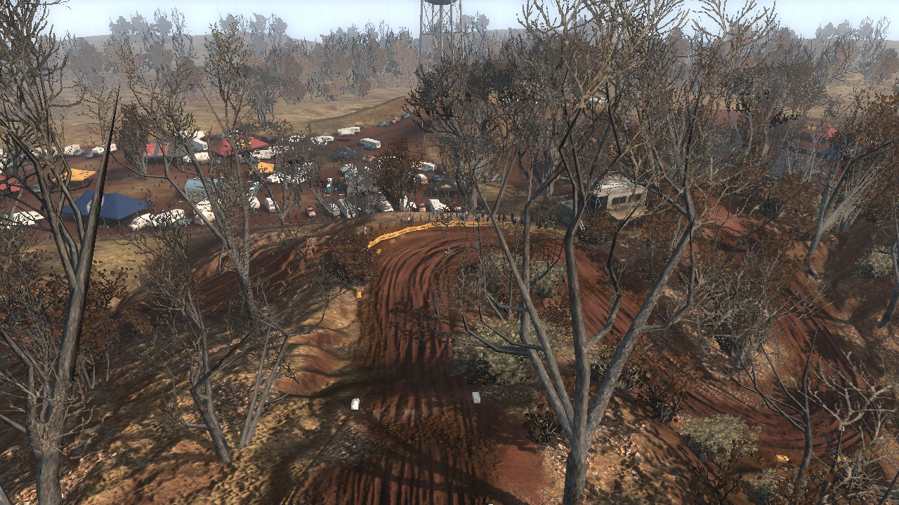The track was meant to be in a dried up riverbed area where years ago it was a full flowing river system. This caused a 2 layer of elevation approach, in the valley (old water level) and on top where the flat plains were. The sharp elevation changes are short but steep and made great for jumping.