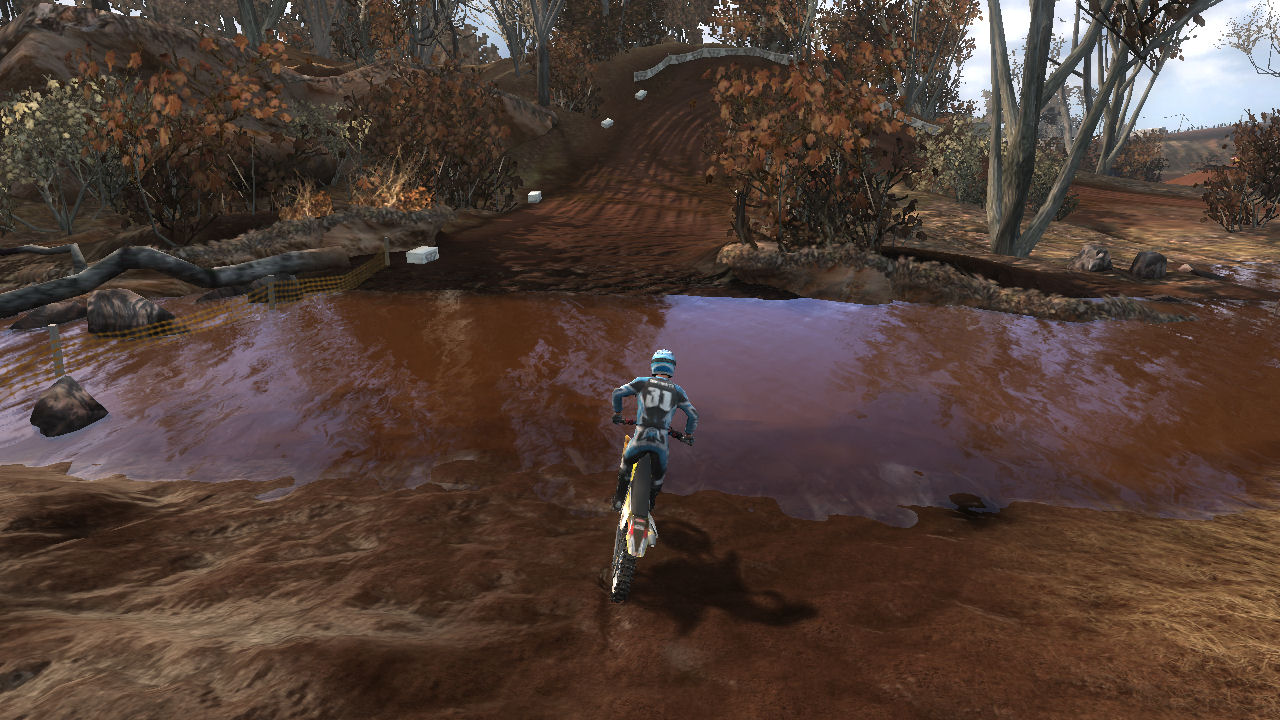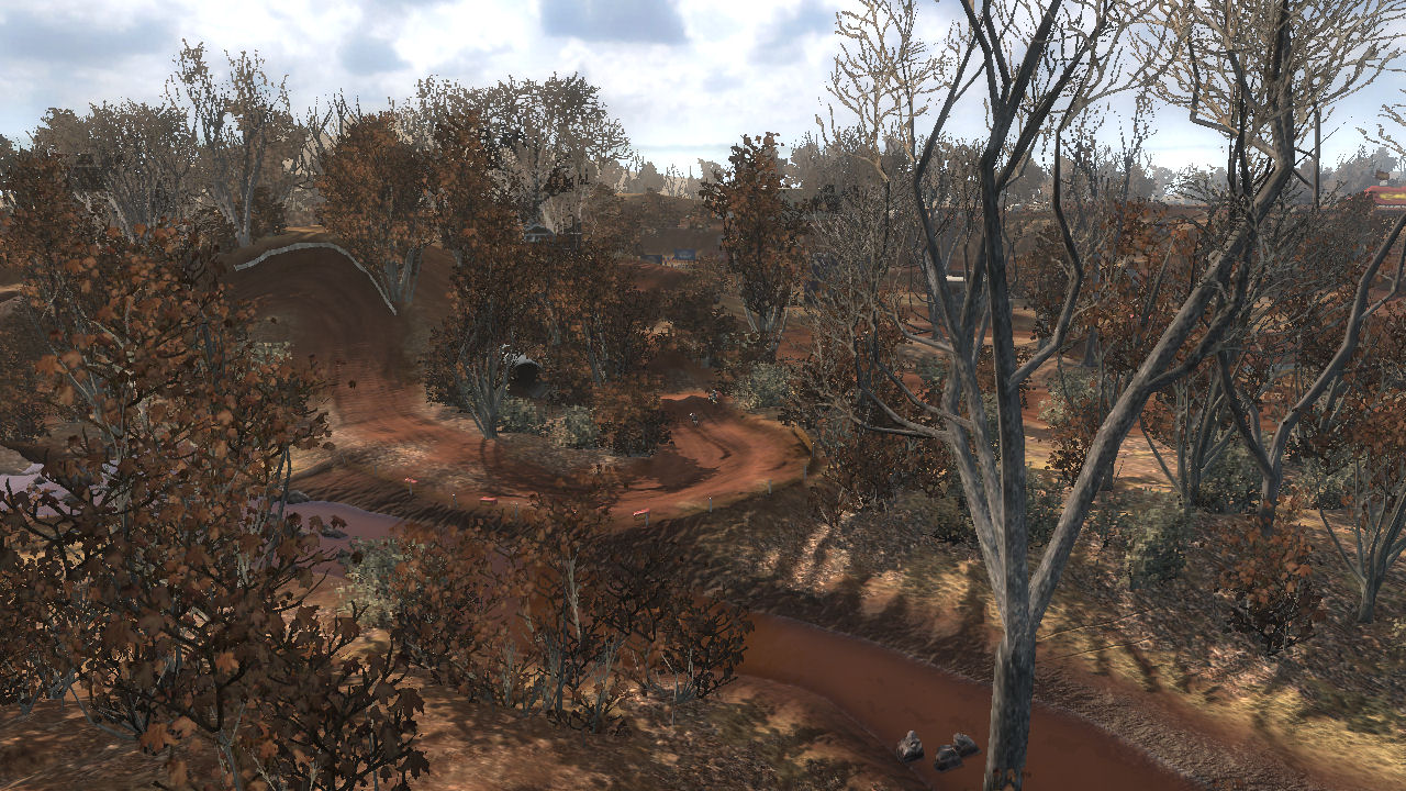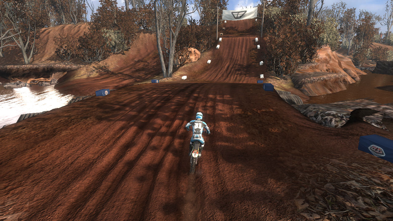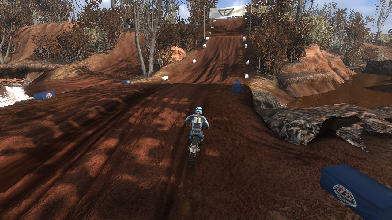 I really like this track. I love the dirt, I love the mud, and I love the fact that it winds up and down hills and through water. This is a good introduction to tight turns, momentum killing uphill whoops, and bumpy decents into water. All require you to pay attention to the path you are taking and timing your moves so that you don't lose your momentum or lose control. Right after riding on this for the first time, I contacted RBW_Checkerz448 to see if this was his track. The 448 seemed like a big clue. This is what he told me: