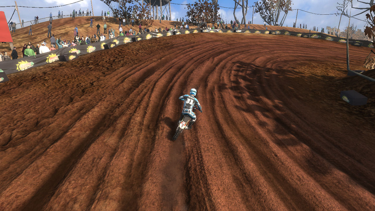 Turn 1 - On the start you want to take turn 1 as tight as possible to prevent other riders getting inside of you and pushing you out, just make sure you don't cut it too sharp if another rider is already inside. Every lap afterwards, I prefer to take this corner wide to get a run at the uphill jumps ahead to keep speed.