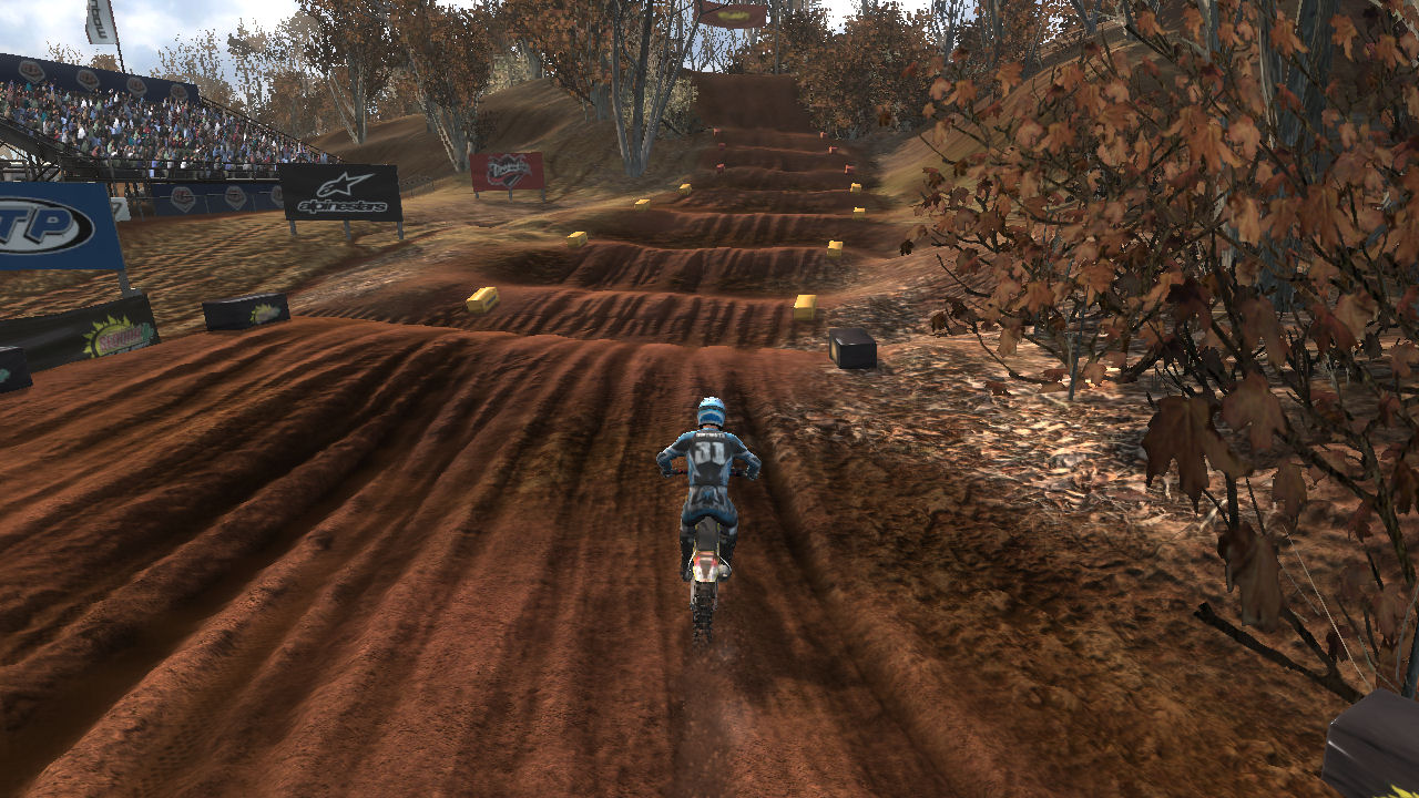 The signature area definitely became the massive roller whoop section up and over the back hill. It actually was set out to be a step on step off at the top of the hill, or a massive quad over the whole thing if you carried enough speed... very similar to a few WFO MCM2 tracks. When that wasn't really that entertaining with the Reflex physics, it evolved into the roller whoops monster that it is now.