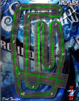 When the gate drops you race up over the mound and as you go down the backside of the mound you are racing over the exit to turn 6 and then across the entry to turn 6. At the startAs soon as you get to the edge of what is turn 5 you start the slight downhill into turn 1. It's a very smooth run into turn 1 with a slight berm on the outside.